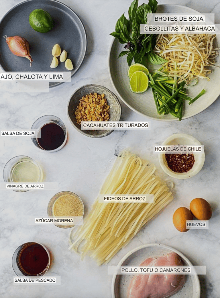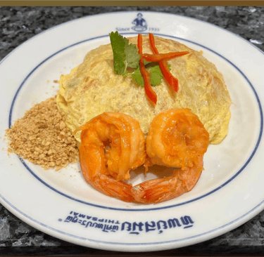 Es un plato sencillo pero lleno de equilibrio tailandés: combina lo dulce (azúcar de palma), lo ácido (tamarindo o lima), lo salado (salsa de pescado) y lo tostado (cacahuetes). Todo se cocina en un wok con fideos de arroz salteados junto a huevo, tofu, camarones o pollo, y brotes de soja frescos. El toque final lo pones tú: un poco de lima, chile seco, cacahuete triturado, y listo. Si no te gustan los sabores muy dulces, puedes pedirlo “waan noi” (con poca azúcar).